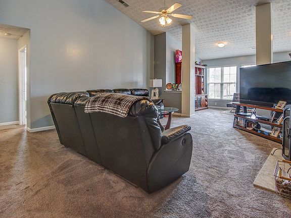 This Brick Front Ranch is a great spacious floor plan! Very open concept. Foyer entrance leads to large Family Room with an additional sitting area. Large Dining Room. Open very large kitchen with island breakfast bar and large breakfast area. Master suite offers a sitting room with a closet. Master bath has separate shower, garden tub, double vanity, and walk in closet. Finished Bonus room could be used as an additional bedroom. Storage building will remain with the home. Located on a cul-de-sac lot.