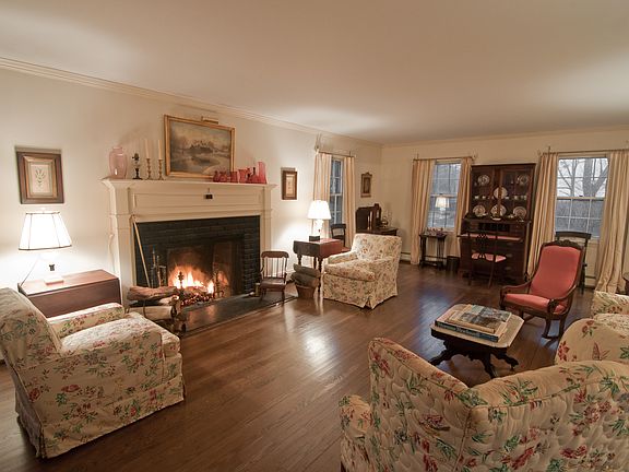 Privacy and prime location are at the heart of this handsome five bedroom colonial. Constructed in 1964, the house retains the integrity of the period-offering a gracious and traditional floor plan that is easily adapted into today's modern and open life style. The living room is south facing and enjoys a fireplace and three outdoor exposures. The kitchen, family room and dining room are all adjacent to a large elevated outdoor stone terrace. A separate first floor bedroom suite has its own entrance. The setting is ideal; a level-hilltop plateau of over four beautiful acres. Well maintained by the same family since its original construction, the house and property are a terrific opportunity for the buyer looking to make it their own.