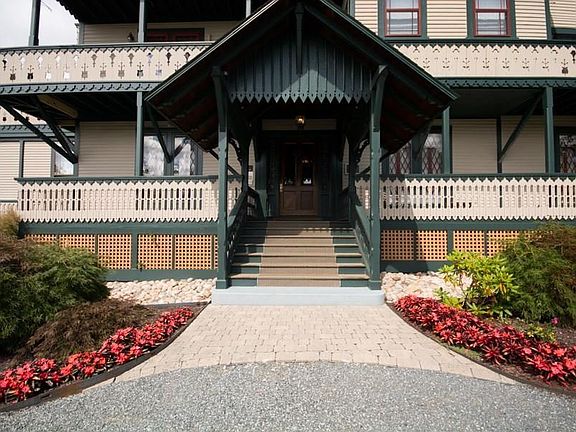 AVAILABLE FOR JUNE, JULY and AUGUST 2020, "The Chalet" has been beautifully and meticulously restored with it's unique swiss style and this unit offers great water views with two decks, one from the living room and one from the master bedroom. Located on the top level, the unit has hardwood floors and is tastefully decorated. The main level has a nice entry way, dining area, kitchen, and living area all taking advantage of west facing views. Also on this level is a bedroom with twin beds and a full hall bath including stackable laundry. Upstairs is a quaint bedroom with queen bed and full bath and private balcony. You'll enjoy harbor breezes but the condo also has A/C. Four acres of manicured, private grounds with a large in ground pool, pool cabana and clay tennis court. Just up the hill from two yacht clubs and about a 10 minute walk to town. Your summer vacation is all at the Chalet!