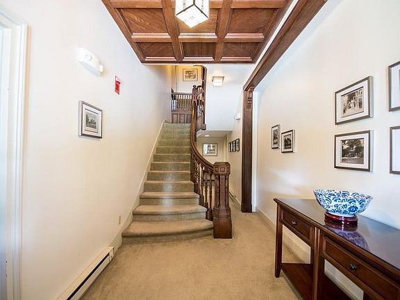 Located in one of Newport's most coveted areas with views of Newport Harbor, "The Chalet" sits at the highest point on Chastellux Avenue on 4 acres of private, estate-like grounds. The "swiss-style" architecture was designed by Richard Morris Hunt and is on the National Register of Historic Places. Converted into 12 condos in the early 80's, this penthouse unit includes 2 floors of living with a bedroom and full bath on each level and a large, private deck with views of Newport Harbor. Freshly painted throughout with plenty of southern exposure, hardwood floors, updated kitchen with wet bar, decorative fireplace, ductless A/C on each level and pool, pool cabana and clay tennis court. Additionally, there is basement storage, garage storage for bikes and paddleboards and ample parking with easy access to the yacht clubs and town.