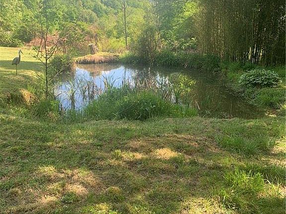 Come and build your perfect home on this peaceful, beautiful and conveniently located lot.  1.23 acres with over half flat and cleared that has a stream, pond and 2 garages.  County permits show a 2 bedroom septic.  Manufactured and modular homes allowed.  Could have potential for a few tiny homes for a great vacation rental business.