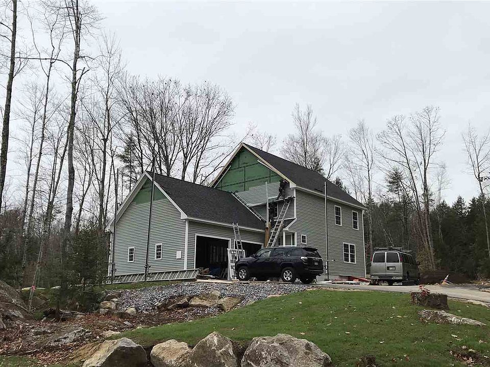 Awesome colonial plan w/ 3 bdrm, 2 garage set privately on wooded 7+ acres! Under construction, foundation, well, septic, driveway in, estimate completion end Jan. Awesome open living space looks 30 x 15+ looks out to 6 acres. First floor room which could be used as a den or potential bedroom. Custom built w/ buyers choices of finishes, colors, cabinets, flooring, lighting etc!! Brand new with super high energy efficiency, low property tax, low maintnenance, warranties! Location in south Weare for easy commute, yet with lots of woods and privacy. Kitchen and Living space is orientated towards the woods and rear for great privacy. Exterior: all low maintnenance finish, choice of colors, covered entryporch, private rear deck ( could add screen porch), landscaped around home, trails to the rear. Interrior: massive open concept kitchen, center island,custom cabinets, buyer choice on cabinets/ countertops, appliance allowance; large entry foyer; ist floor den/office/ whatever, 1/2 half bath. Second floor 3 spacious bedrooms, large closets, master w/ private bath & walk in closet, option to finish space over garage. Builder has built 100's of homes, great quaility brand new custom built ! Other lots available. Final plot plan /lot lines are subj to town approval of lot line adjustment. Awesome south Weare locaiton on quiet side road w/ excellent access south or north, travel about 20 minutes from Amoskeag bridge/manchester to woods & transquility! floorplan shown subj to changes