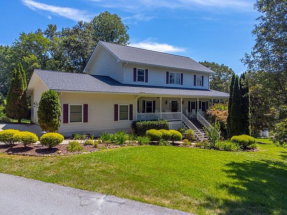 Welcome to this immaculate 4-bedroom, 3.5-bath home on 1.17 acres in the sought-after Dowdle Trace community. Enjoy year-round long-range mountain views from a flat, beautifully landscaped yard that backs to a peaceful common area. Outdoor living abounds with a wrap-around covered porch, screened back porch, and a patio with fire pit—ideal for relaxing or entertaining. Inside, the open-concept layout features a welcoming foyer, hardwood floors, updated kitchen with granite counters, breakfast bar, stainless appliances, and spacious living/dining areas with a cozy gas log fireplace. The main-level primary suite includes double vanities, tiled shower, soaking tub, and walk-in closet. Also on the main: laundry room and oversized 2-car garage. Upstairs offers a second primary suite, two additional bedrooms, Jack-and-Jill bath, bonus room/office, and second laundry area. The finished walk-out basement includes a large rec room with gas fireplace, access to the patio, and extra storage/workshop space. Paved access, high-speed internet, and just minutes to town—this home truly has it all!