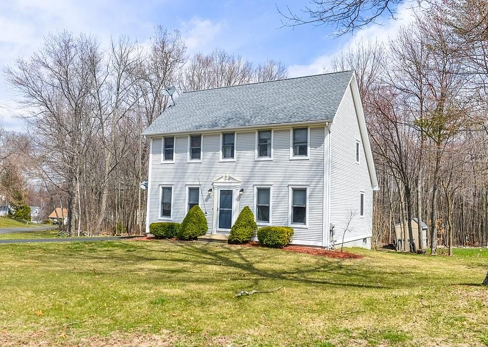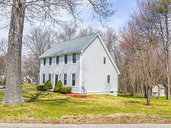Welcome to the Dana Woods community! This move in ready saltbox, colonial is located on a corner lot which abuts protected woods and is set back from the street. Enjoy evenings on the back deck overlooking the beautiful landscaping and stone wall. Step through the glass slider to a bright, large kitchen with eat-in dining. The kitchen island is perfect for entertaining during family gatherings. Light streams into the cheery living room. This home features four spacious bedrooms, two on each level and a full bathroom on both floors. The laundry room is conveniently located right outside the upstairs master bedroom. There have been many updates including energy saving improvements. Enjoy the storage and work space the basement offers. This home is a must see! Make your appointment today!