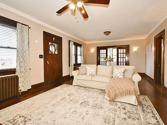 Gorgeous stately home w/an abundance of charm & original woodwork. Newly refin intricate hwfl's throughout the main level compliments the character of the dining rm built-ins, original 8 panel glass french doors to family rm & decorative fireplace in living rm. Tons of space with over 2,200 sqft. The main level offers a huge living rm, family rm, dining rm, updated full BA plus generous kit (hard to find for the age) AND Breakfast nook! Antique white cabinetry, recessed lighting & SS appliances. The 2nd fl is well laid out with new carpet, 3 BR's w/ample closet space, 2nd full updated BA & lrg laundry rm w/extra storage/office space. YES, you HEARD that correctly, 2nd FL LAUNDRY!! Lower lvl is framed for future game rm. Table top rear lot is fenced, has a patio area & gate to the 1 car det garage & 2 additional off st parking spaces. Many mechanical updates:new electric panel, re-wired kit/BA, new concrete stairs, pella windows (under 10 yrs), newer boiler, garbage disp & alcoa gutters