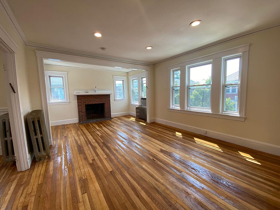 Second and third floor duplex in a 2 family home. This whole SUNNY unit was just painted with new carpet and POLISHED FLOORS. *SKYLIGHT* and Laundry in unit. Kitchen has quartz countertops and updated appliances. Bedrooms are all near comparable sizes and living room/dining room are large! 3 PARKING or 6 tandem in back. Unit is DELEADED. Solar panels on roof partially benefit the electric bill of this unit. cold water and sewer included. all utilities included for 4800