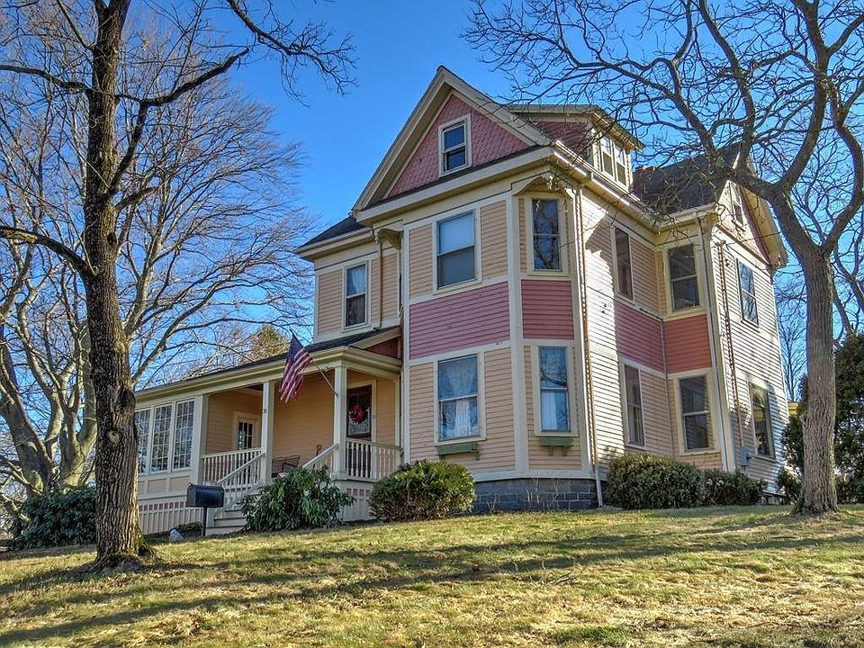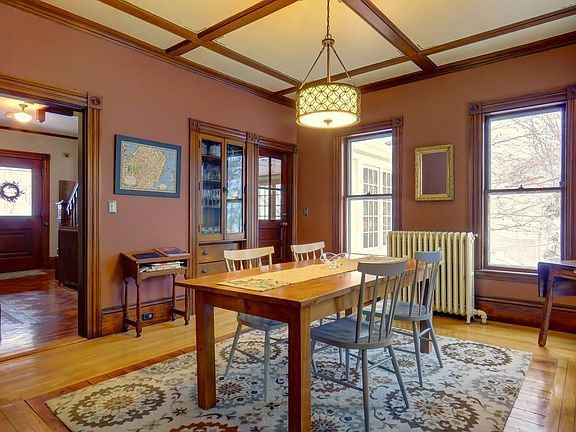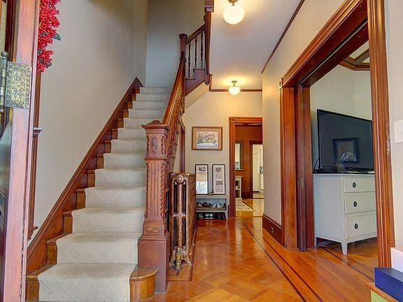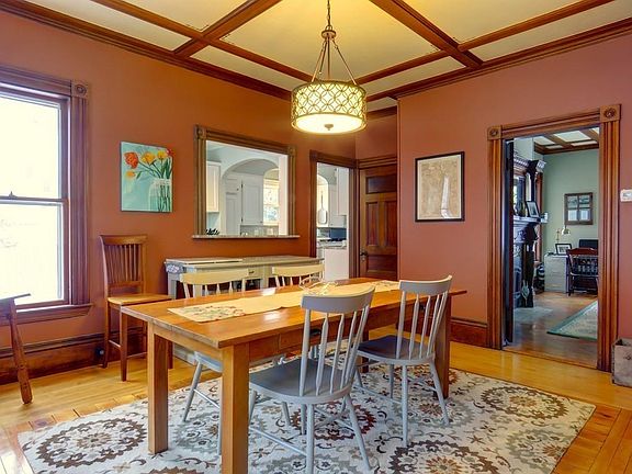 Beautiful 1905 Victorian on a hill greets you graciously as you approach. Charming and historic, this home has been lovingly updated. Original stained wood work throughout, unique hardwood floors, coffered ceilings, and pocket doors. Renovated kitchen: quartzite counters, breakfast bar, vintage porcelain farmhouse sink. Spacious living room opens to a study w/ original mantelpiece, new gas log insert, stained glass window. Formal dining room w/ built in hutch, pass-through to kitchen. Half bath on first floor. Second floor has three bedrooms, hardwood floors throughout. Second floor full bath recently completely renovated w/ double vanity, tiled tub/shower, and laundry hookup. Full basement w/ additional laundry hookup and full bath. 2 year old Buderus boiler. Generator ready. Full third floor walk up finished attic space. Two car detached garage. Beautiful lot with in-ground swimming pool. Antique brick patio. This home truly has all the charm and all the updates you would hope for!