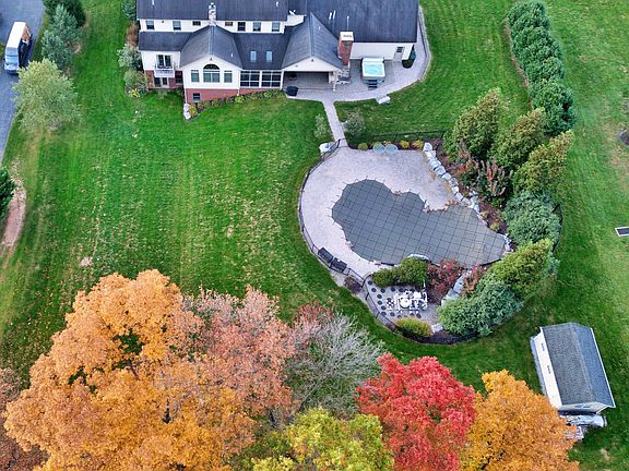 Custom built and professionally designed home on 1.15 acres set with a preserved farm and trees behind for the ideal country setting yet the amenities of natural gas and public sewer…..and close to town. 6 oversized bedrooms, 5.5 baths, and closets with custom shelving….all but 1 bedroom have walk in closets as well. The primary bathroom boasts separate sink areas as well as a a custom steam shower with bench and heated walls plus a full body shower system. The bedroom is designed so that an early riser can shower, dress and leave without disturbing the lucky one who gets to sleep in. 5 1/4” baseboards and 3.5 “ casings thruout the home. 9 ft+ ceilings thruout the home…even the basement finished area has 8.5 ft ceilings. The main living space is open and vaulted with impressive finishes. The gourmet kitchen boasts 2 dishwashers, 2 microwaves, 2 ovens, a gas and an electric cook top, 2 sinks with one in the stand out island complete with double-stacked chiseled edge granite counter top. The breakfast bar seats 8 and the stools will remain and an adjacent dining area offers even more seating for a large crowd. Large walk in pantry is the cooks delight. The 2 story greatroom with gracious chandelier and the second story overlook boasts unique curved railings and contemporary square pickets. The double sided gas fireplace and double French doors lead to the sunroom…a vaulted space with heated floors and access to the screened porch. But you’ll never want to leave with the 5.1 surround sound and 4 speakers built into the ceiling…subwoofer connection in rear wall. Tray ceilings and crown molding in the primary bedroom and diningroom which also boasts wainscoating. The hardwood in the gracious entry follows thru the diningroom and first floor office…or homeschooling space….so many uses what can this space be for you? Upstairs you will find 4 bedrooms and 3 bathrooms, 2 window seats and every bedroom has a walk in closets….the only problem is they may never want to leave! So many details I can’t list them all but you’ll fall in love with the mud area conveniently located off the kitchen with access to the garages, laundry room, half bath and the back porch. 6 custom built in lockers and extra storage will help keep you organized . The lower level is an entertainers dream…generous sports bar and the fridges, keg system, stools, tables and more stay…the foosball, pool table, ping pong and 4 TVs all stay too. A full bath and an extra bedroom or playroom offer so much flexibility and the mirror lined exercise room…no need to go to the gym. While the equipment doesn’t stay the floor mats do. The entire finished basement also has heated floors for warmth and comfort. But wait….the back yard paradise is accessible from the lower level as well as the open level covered porch with a 2 sided stone/wood burning fireplace. Watch the roaring fire from the hot tub which stays and be cozy even in the snow this winter. The in ground salt water pool is complete with a waterfall and spill over spa as well as color changing LED lighting all enclosed with a beautiful aluminum fence. In case you don’t have enough garage space with 4 oversized bays there is a shed for your mower. And over the garages you’ll find walk up attic space …a generous 42 x 15. A must see as there is so much to see and quality to appreciate.Please note that owners recently won a tax assessment appeal so taxes listed here are the new ones for 2025 and going forward!