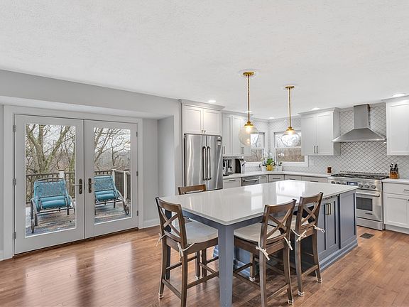 This exceptional four-bedroom home nestled on a treed double lot has been transformed inside and out. Step inside to find stylish finishes, an open-concept layout, and abundant natural light throughout. The newly designed kitchen features sleek cabinetry with a large center island, Quartz countertops, and premium stainless-steel appliances, perfect for culinary enthusiasts. The vaulted master bedroom features a bath that creates a spa-like experience with an oversized shower. Upgrades continue with the finished lower-level opening to a covered patio, extensive landscaping, new roof, siding, and hardwood flooring all add to the home’s refreshed appeal.