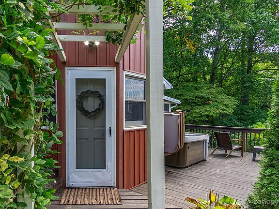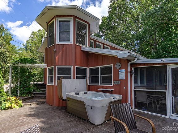 Amazing year-round views complement this exceptional home ideal for family, entertaining or to continue as a successful vacation rental. This home has all the spaces you need, a large dining and living area with a beautiful stone hearth fireplace, a screened porch, small fishpond, open deck with four-person hot tub, 2 car garage and workshop as well as outside spaces to roam, garden and enjoy. The 4 BR / 2 BA house sits on .8 acres. The home is offered turnkey with all furnishings (minimal personal belongings will be removed). Enjoy long range views in a private and quiet neighborhood just a short 18 miles to the airport and 30 minutes to downtown Asheville. Shared driveway and well.