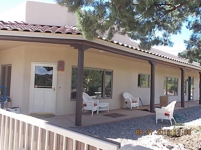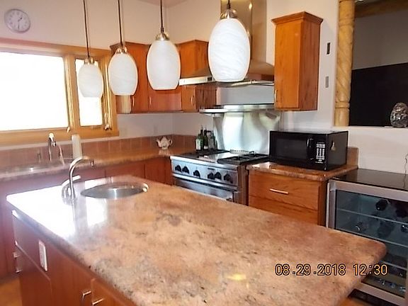 Exceptional Southwestern home for sale in Silver City, NM. The kitchen with granite counters and upscale appliances is sure to please any chef. The Master Bedroom has kiva fireplace and sliding door to a covered porch. Master Bath features a walk-in tiled shower and double sink vanity. There is also a walk-in closet. There are two additional bedrooms and baths for guests. The large living room features a kiva fireplace and a viga beamed ceiling. There is also an office area and a Family Room that opens to the outside. There is porcelain tile throughout the home. Enjoy sitting on the covered porch overlooking the native southwest garden and watching the hummingbirds flit about. A quiet place on 3/4 of an acre with mature trees. A wonderful retirement home that is close to Silver City with its art galleries and restaurants as well as the Gila National Forest with 3.3 million acres available for hiking and other outdoor activities.