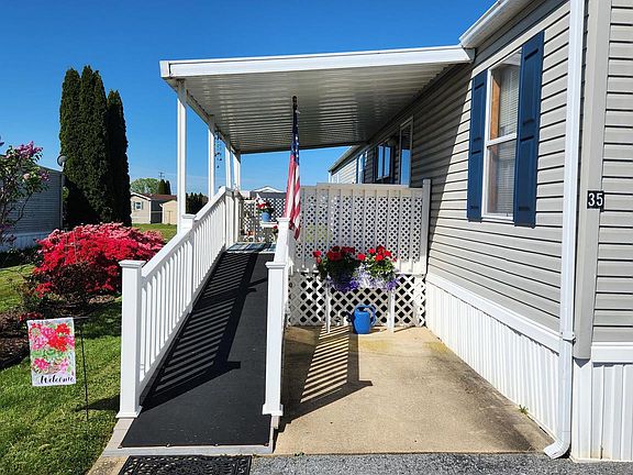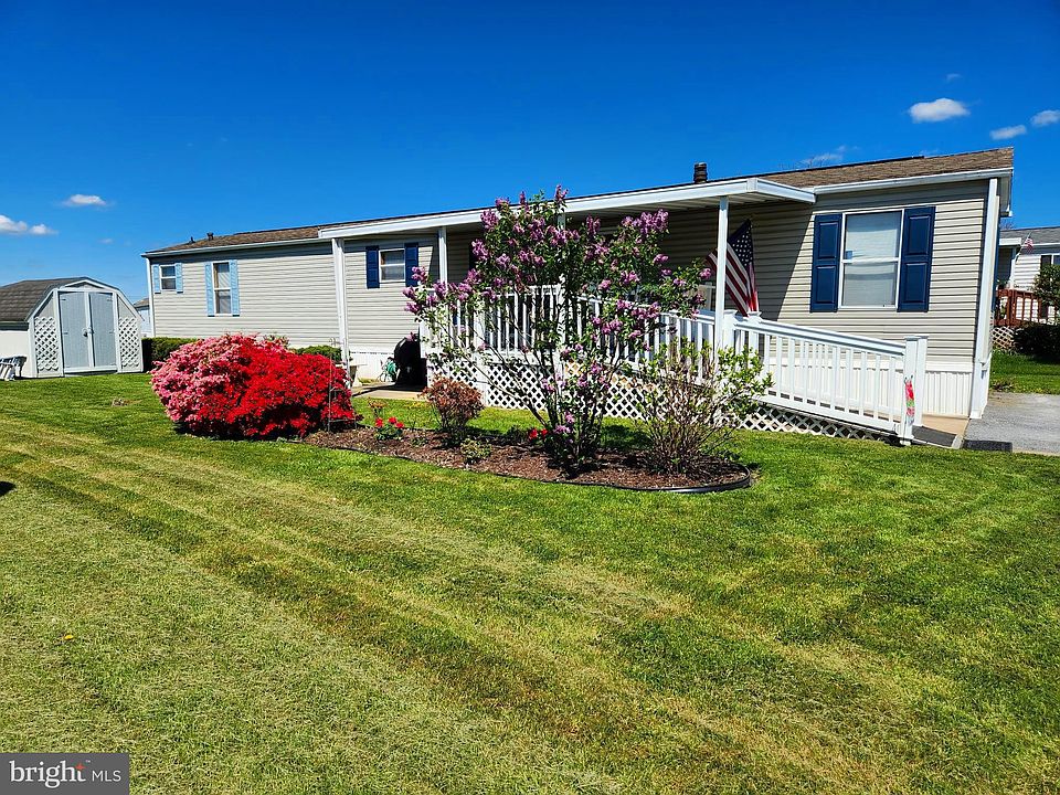 Very neat & cared-for manufactured home 55+ Community, physically challenged access w/ramp, fully covered deck. Garden Shed included. Recent updates include kitchen and living room flooring, Furnace, access ramp, kitchen and bath sinks, as well as the garden shed doors. Window shutters are being replaced.