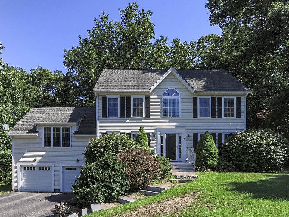 Welcome to Brookfield Acres. Perched on a private 1+ acre lot sits this spacious 3 Bedroom Colonial just awaiting your personal touches and updates. The floor plan has everything you want in a home…open foyer with Palladian window, formal dining room with crown moulding and hardwood floor, office with French door, a large kitchen with peninsula seating, solid surface countertop, maple cabinets and a pantry. A slider off the breakfast nook opens to the screen porch and deck with composite flooring. The focal point of this home is the expansive family room with cathedral ceiling and gas fireplace. Also on this level you will find a guest bath, coat closets, direct entry from garage, deck entry and a separate laundry room. Pop up the stairs and find the primary bedroom with walk in closet and bath with soaking tub, 4ft shower and double vanity. 2 additional bedrooms and full bath complete this level. Need more room? 2 finished bonus rooms in lower level are ideal for game room, office or work out area-each with separate baseboard heat and one has a mini split. Plenty of unfinished space remains for all your storage needs and another access to garage. HVAC and HW heater updated. Other amenities include wired for portable generator, irrigation, shed, Public Water and Sewer plus Natural Gas. Wonderful commuter location, close to highway access, shopping, and dining. Come make this home your own!