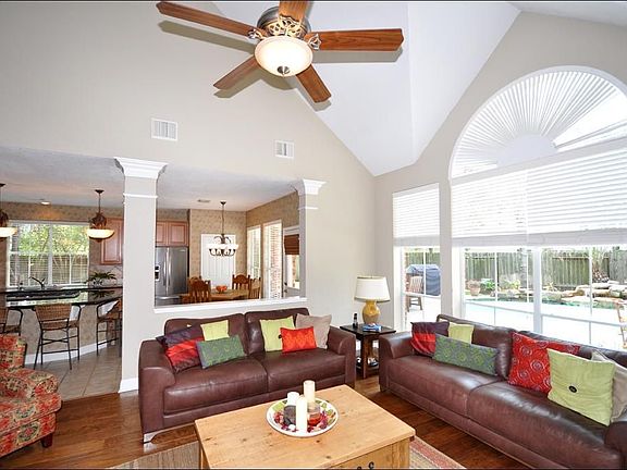 Greet the sunrise sitting on the large covered front porch of this gorgeous Weekley Drexler on top of the cul-de-sac lot in quiet neighborhood. The sunsets are fantastic from the privacy of your own pool w/multiple waterfalls & tropical landscaping. Large bright family area opens to big kitchen making very sociable! Handscraped wood floors & granite! Spacious master suite overlooks pool. Upstairs gameroom w/balcony. Huge pool & still room to play! 3 car garage.Close to schools, parks & shopping.