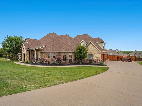 Fabulous & Spacious Custom home in the outstanding Aledo ISD! The home sits on .4 of an acre and is near Oeste Ranch Golf Course and a minute from Lake Weatherford and local shopping and dining. An ideal floor plan with all bedrooms downstairs. Tall ceilings, crown moldings, and hardwood floors throughout. Granite countertops in the kitchen with plenty of cabinet space and new stainless steel appliances. Large living room with built-ins and gas fireplace. Upstairs has a HUGE open area that can be used as a game room, media room or second living room. Wonderful private Master Suite and ensuite. You will love the oversized 3 car garage with plenty of storage. 14 x 9 SHED in the backyard. You do not want to miss this one. Such a fabulous, quiet location with NO HOA.