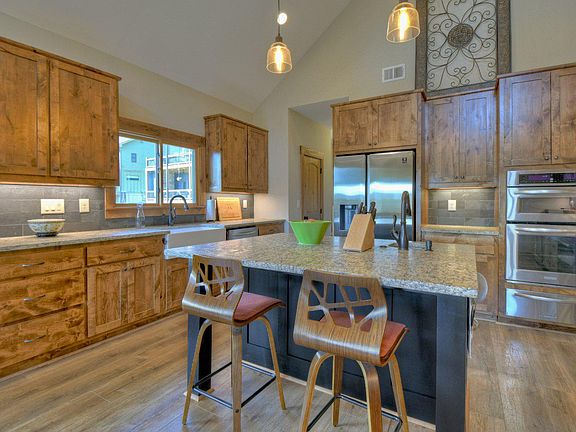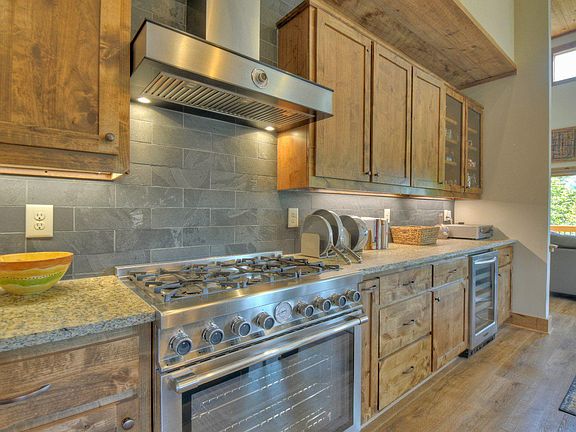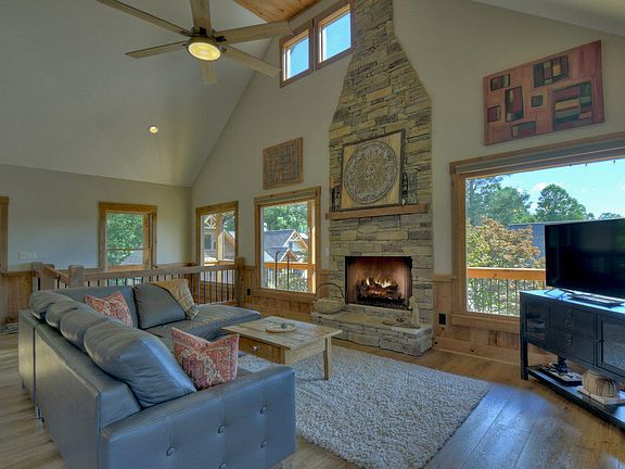 Overlook at Blue Ridge Custom Home, walking distance to Downtown Blue Ridge! This stunning 3/2.5 bath home is the perfect mix of rustic & modern touches. Step inside to find a large great room w/floor to ceiling stone gas log fireplace surrounded by windows. Spacious chef's kitchen features slate backsplash, farmhouse sink, 6 burner 36" Italian gas stove w/ vent hood, double oven, warming drawer & wine cooler. Adjacent dining area perfect for entertaining. Amazing covered outdoor living space w/ wood burning fireplace. Master on main features freestanding tub, glass enclosed tile shower, double vanities & walk in closet. 1/2 bath & laundry room round out the main level. Full finished terrace showcasing a second living area, gentleman's bar, additional 2 bedrooms and full bath. 2 car garage, paved access, fiber internet, natural gas, & gated entrance all within the prestigious Overlook at Blue Ridge.
