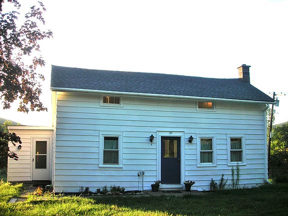 Charming rustic country farmhouse set amidst cornfields and meadows. This home has exposed beams and wide-board pine flooring, an updated kitchen and bath, and enough land for gardens and a few animals. This area is zoned agricultural, and the property includes two outbuildings. 1.4 acres in the shape of a triangle, with open fields at the back. Cambridge schools.