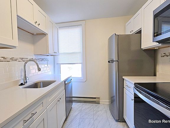 It doesn't get any closer! Located literally in Davis Square within a professionally managed and maintained building, this very sunny, newly renovated 1 bedroom apartment features a beautiful living room with hardwood floors, newly renovated kitchen with stone counter tops, new flooring, and stainless steel appliances including a dishwasher, built in microwave and full size stove. Laundry is on the premises. Cat friendly Available 9/15/2025.