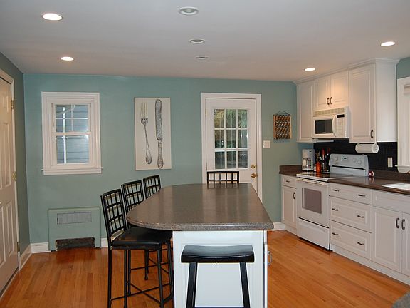 Feel the warmth in this pristine, Colonial set in friendliest neighborhood! In 2005 this ranch was built up & now offers 5 bedrooms (on 2nd level), 3 full baths, spacious second floor hallway w/ laundry area. Room on first floor w/ full bath in hallway is perfect for Au Pair/Guest, currently being used as office. Large eat in kitchen w/ breakfast bar, corian countertops, tile backsplash & hardwood floors. Sun-lit formal living room with fireplace and crown molding. Dining area and family room combination allows great space for entertaining with access to deck & level yard. Master with full bathroom (Jacuzzi Tub & shower) & 2 walk in closets. Full basement w/ finished playroom, huge storage area & plenty of closets. Central Air on 2nd floor.