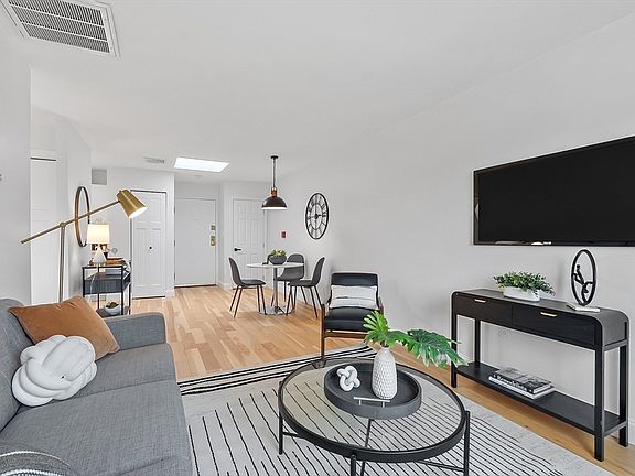 Welcome to your nicely updated one-bedroom condo in Quincy! Situated on the top floor, this corner unit features skylights that flood the space with natural light throughout the day. Enjoy wood floors, in-unit laundry, and a modern kitchen with new stainless steel appliances. Plus, stay comfortable year-round with central AC. Appreciate the rare convenience of covered parking and an elevator for easy access. With close proximity to the T for a seamless commute to Boston and views of the Fore River Bridge, this condo offers urban living at its finest. Schedule a showing today and experience luxury living with effortless convenience!