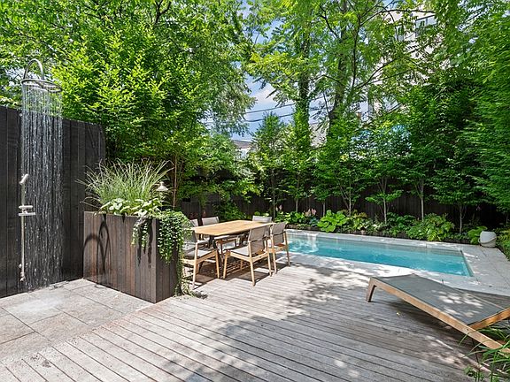 A one-of-a-kind two-family townhouse nestled in prime Williamsburg, 35 Devoe Street is the quintessence of contemporary Brooklyn luxury and charm. It is made especially distinct by an oasis-like irrigated backyard that boasts a private outdoor shower, built-in decking and planters, and an in-ground heated pool with water level detection, salt water chlorination, integrated mood lighting, a robot vacuum, and an automated cover. The pool is extremely versatile and can be used all year-round. It is ideal for cooling off during the warmer months of the year and becomes a spa-like hot spring in autumn and winter. Additional features of the house include a deep front garden, gorgeous hardwood floors, elegant sash windows, a reinforced foundation, a finished basement with several closets and a side-by-side washer/dryer, a sublime owner's duplex, and a self-contained income-producing rental unit. The lower level of the 3-bedroom, 2-bathroom owner's is a stunning, floor-through living, dining, and kitchen space saturated with natural light. The kitchen leads out into the backyard and is equipped with an eat-in peninsula, sleek stone countertops, a mosaic tile backsplash, custom white lacquer cabinets, and a suite of high-end stainless steel appliances. A pair of closets and a windowed full bathroom complete the first floor. A windowed staircase leads up to a trio of spacious bedrooms. The master bedroom possesses a massive walk-in California Closet and a windowed en-suite bathroom, while the second and third bedrooms overlook the backyard and have reach-in California Closets. All three bedrooms have motorized blinds. The third floor rental unit is ideal for use as an income-producing rental, live in nanny quarters or guest/in-law suite. It features one bedroom, a windowed full bathroom, and a bright open-concept living, dining, and kitchen area with a sky light. 35 Devoe Street has a total of 3,822 sqft, (2,767 sqft above grade and 1,052 sqft below grade) situated on a picturesque tree-lined street in Williamsburg. It is just steps from trendy restaurants, bars, cafes, and shops, and is less than ten minutes from McCarren Park. The G and L subway lines are both around the corner.