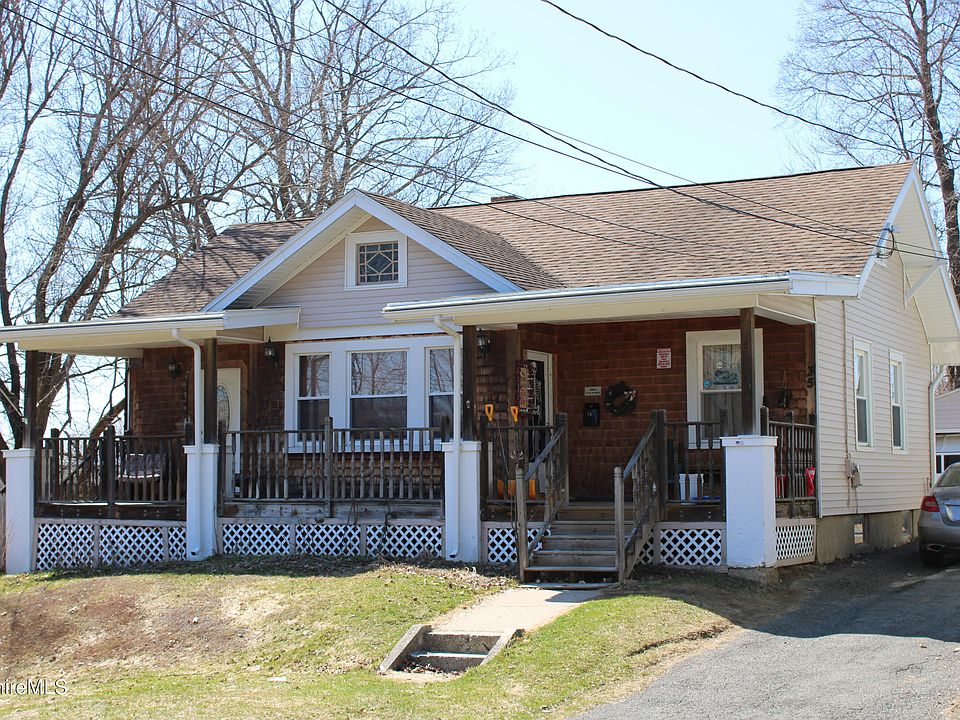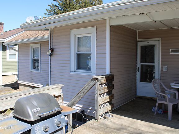 Very spacious 3 bed /1 bath Cape with over 1600 sq. ft. of living space inside, and an expansive front porch and a large back deck for outside living space. Newer oil heating system, siding and gutters. Also mini split heat pump for A/C in the summer months. Over half of the second floor is open attic space for plenty of storage or possible extra living space.
