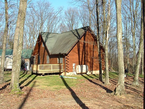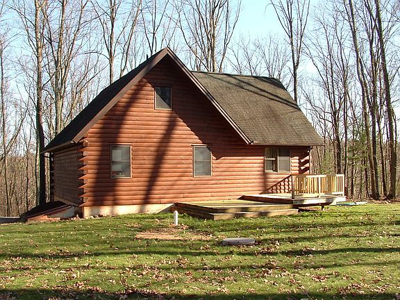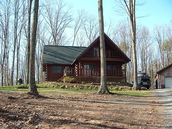 Here is a beautiful log home sitting on a wooded lot with mature trees. Perfect setting. Second floor balcony off master BR to enjoy the view and outdoors. Large garage workshop for storage and toys and partially finished lower level for extra living space. Radiant floor heat to keep your toes warm in the winter