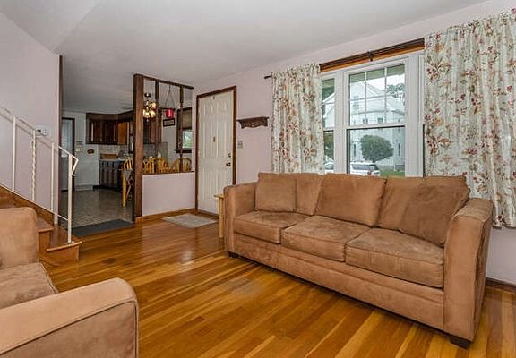 Three bedrooms, fully fenced flat backyard & located on a quiet dead end street, this front-to-back split is a charmer & within walking distance to commuter rail! Main level features fireplaced living room with hardwood floors & fully equipped kitchen with eat-in area. On the second level you'll find three good-sized bedrooms (with hardwoods under carpet) & updated full bath. Lower level features large family room & separate laundry room with storage area. Fenced bacckyard is flat and features a large patio, great for outdoor entertaining. This home has a new furnace & hot water tank, replacement windows, has been well maintained by its owner & is convenient to shopping & other amenities. Come make this your home!