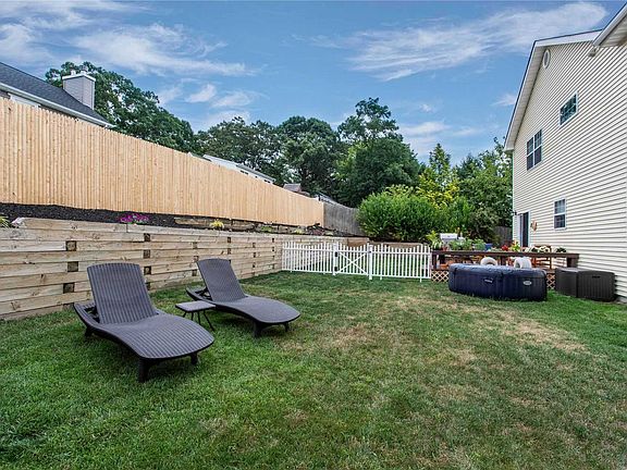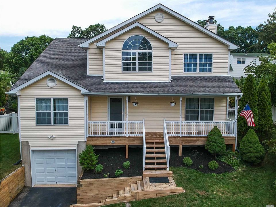 A custom Victorian by the beach is ready for its new owners. Each room in this 3 bedroom, 2.5 bathroom house with central air offers updates including brand new granite counter tops in the kitchen, fresh paint, base moldings, professional landscaping, and a tasteful master bathroom with soaking tub and custom stone shower with rain-can head. Settle in for the night in your main level living room or head upstairs to your second floor den to enjoy the evening view south across the neighboring blocks and tree line. For entertaining this home provides a formal dining room and fenced yard with deck. In the basement you'll find an unfinished space with 9 foot ceilings, laundry and a walk out entrance through your 1 car garage. All of this is complemented by a quiet block of less than a dozen homes which ends at acres of county-protected property. Rocky point schools and local beach club membership available with annual membership. **Masks and gloves required by all** Feature list attached.