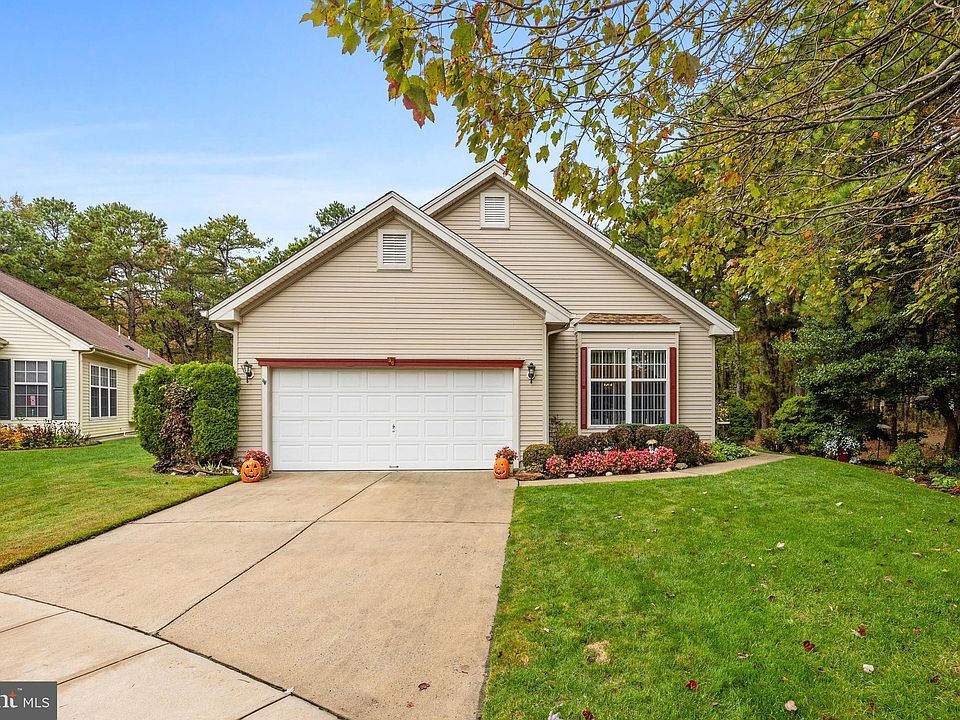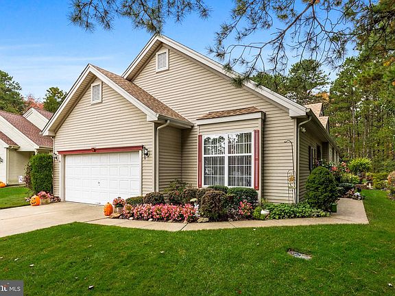 Welcome to 35 Dutchess Court. This well-maintained, lovely Hartford model home offers not only a spacious floor plan but is also perfectly situated on one of the best lots in all of Leisuretowne. Located in a quiet cul-de-sac, this property is nestled against a wooded, scenic area and is surrounded by mature landscaping and a garden, creating a peaceful, private yard. The side entrance leads to the foyer which opens to a large eat-in kitchen to the left and to a roomy dining/living area to the right. The bright, sunny kitchen is surrounded by white cabinets offering plenty of storage and counter space. Updated stainless steel appliances and gas cooking will appeal to the home chef. Beautiful hardwood flooring flows throughout the dining area, living room, and kitchen. Where the original floor plan calls for a sunroom is a den or sitting room with views of the entire living area and an additional sunroom. The added sunroom is surrounded with full-length windows providing beautiful views of the yard and access to the brick patio. To the rear of the home is the huge primary bedroom with an attached primary bath with a soaking tub and separate shower. A large walk-in closet plus an additional closet, and 3 more closets in the hall mean you'll never have to worry about storage space. Down the hall is the laundry room, a generous-sized second bedroom with a closet, and a main floor full bath. Upstairs you will find an enormous bonus room with vaulted ceilings and an additional huge walk-in closet. This versatile room is the perfect space for overnight guests, a second family room, or a home office. Outside you'll find plenty of places to sit and enjoy the tranquil views. In addition to a great location, this home is also part of a great community. Leisuretowne offers two community pools, three clubhouses, a lake for fishing and kayaking, a putting range, bocci courts, and community activities. Come see all this home and community have to offer.
