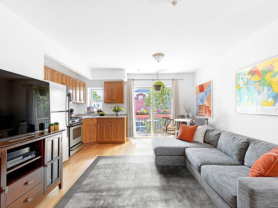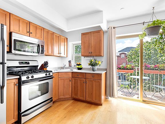 Breathe Easy! Sunny top floor 2 br, 1.5 bath condo has a private balcony, common roof deck one floor up, and ground level garden space, perfect for BBQing. Plus this unit comes with a deeded covered parking space and an almost 5' x 10' storage unit. This well-configured apartment is in a boutique, 6-unit Windsor Terrace PET FRIENDLY condo building on a quiet, tree-lined residential street. Light streams in through sliding glass doors that open to the wide balcony at the end of the open layout living space. Tall cabinets provide storage space in the kitchen and are accented by the stainless steel appliances. Hardwood maple floors reach throughout the unit. Master bedroom has two exposures for a pleasant cross breeze. Second bedroom has a large window and closet. Both bedrooms' closets have automatic lighting when you open them. Three new Friedrich through-the-wall ACs have been installed in each room. Two of them can be controlled by WIFI in case you like to cool the rooms off before you arrive at home. Laundry is located in the building and is free for owners! Situated in the wonderful Prospect Park adjacent neighborhood of Windsor Terrace this condo offers all the suburban feeling with all the close local city amenities. These Include eateries such as Hamilton's, Batata Pita Bar, Windsor Coffee, Della, La Paddock, Juice Box liquor, take out favorite Brancaccio's Food Shop, and more. For physical activities there is Jaya Yoga, the Greenwood Playground, McKenna Park, Prospect Park walking and bike paths, and you can volunteer to walk dogs for Sean Casey Animal Rescue. Easy and quick access to many public and private schools in the area and also to NYC via the Ft. Hamilton F/G station and many bus lines.