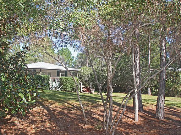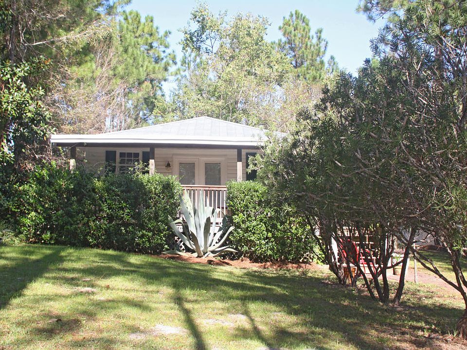 This retro 'Beach Shack' offers the old vibe feeling of living near the beach but tucked back onto a .57 acre wooded lot with awesome outdoor space. Once this house was a beach front home but was moved to this great lot that offers privacy and plenty of room for planned outdoor living. The land is full of beautiful natural flora with lots of mature trees. There is a new detached 12' X 20' car garage that could be used as a workshop or storage for your kayaks, fishing boats, paddle boards or any other water toys you may have. Behind the house is a private potting area with a large sink. The east side of the house has a paver courtyard next to a shed that has good shelving space. There is also an outdoor shower. To enter the home you go to the 8' X 31' covered 'old timey feeling'