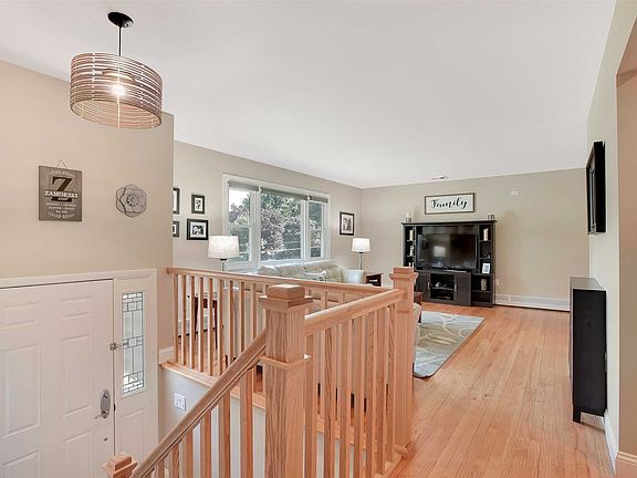 A sleek modern kitchen sets the tone for this stunning contemporary raised ranch. With white quartz counter tops, beautiful mid-tone shaker cabinets, crown moldings, stainless steel appliances, and a breakfast bar this kitchen marries form and function. Every room displays an attention to detail rarely seen in comparable homes: Glistening hard wood floors, 5 panel shaker style interior doors, craftsman banister and newel posts, and oversized baseboard molding. The Master bedroom has its own half bath and the 2 other bedrooms on the main level are spacious and bright. Downstairs has a flex room which can be used as an office, playroom or personal gym. Enjoy the private park like backyard or watch the butterflies land in the front yard landscaping complete with extensive blue stone and stack stone craftsmanship. 2015 New Roof (down to the plywood); 2016 New Central air; 2016 New Water Softener; 2018 New Garage Door; Not to be missed!