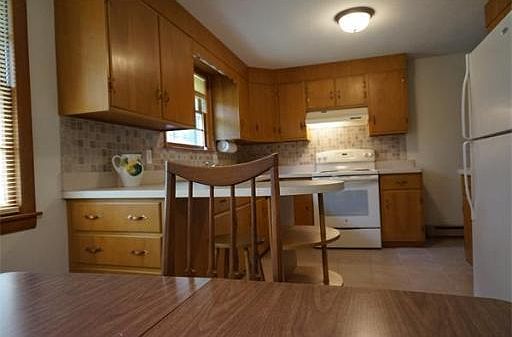 Pride in ownership! Move in ready home is a perfect starter ranch with 1220 sq. ft., 3 bedrooms,1 bath, hardwood- tile floors, updated kitchen counters, lovely neutral back splash, dining area and breakfast bar, gutters, storm doors, a maintenance free exterior with new vinyl siding and a new vinyl floor in basement. The spacious living room features a wood burning fireplace, picture window and hardwood floors. The extra living space in the family room features a fireplace, slider to private backyard with water view. Finished half of basement makes a great office, guest or rec room with a pool table. Attached oversized one car garage gives you plenty of storage for all your toys! Ready for you to scoop it up!