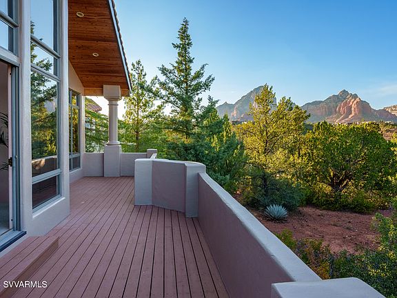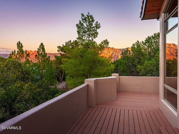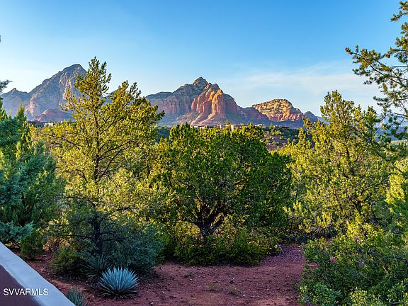 Prepare to be wowed by STUNNING RED ROCK VIEWS from the moment you walk through the door. This gem is nestled within the gated community of Les Springs. The Sedona oasis boasts breathtaking panoramic views from Snoopy to Chimney Rock, making every day feel like a vacation. Main level features a split, open floor plan with 2 bedrooms and baths, a unique office/den with private patio, kitchen, dining and living/great room. Primary suite features killer views, vaulted ceiling, gas fireplace, 2 walk-in closets, safe and spacious bath with washer & dryer. The lower-level walkout provides private living space, bath, kitchenette and patio. Perfect for guests, as a man cave, art studio or whatever you can imagine. Enjoy natures glory from the wrap around deck. Relax, take in the views and stay for stargazing.
