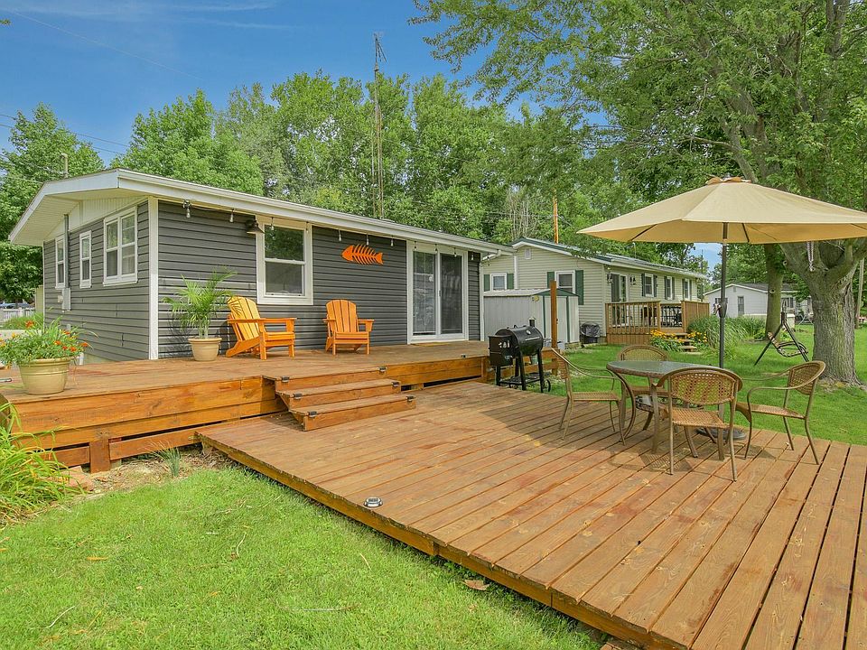 This is what we call lake living paradise! At this price it doesn't get any better! This gorgeous 2 bedroom 1 bath cottage with direct access to Little Barbee welcomes you to enjoy the beautiful lake chains at Barbee Lake. 7 interconnected lakes! Breathless views, lake bars, fun activities, relaxation, beautiful sunsets, all sports lake, and much more! Enjoy sitting on your deck overlooking your 60ft channel front lot! Interior is gorgeous as well and allows a lot of natural light in! Some of the news include: Newer roof, Newer carpet, New siding, additional deck added, new kitchen counter, new patio door, and more.