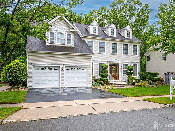 Lovely Colonial located on quiet cul-de-sac with great access to highway for commuter. This home features a grand entrance foyer. There is a formal living with 2 large windows, wood floors and gets great morning sun. The formal dining room also with wood floors and large windows makes a great space for hosting holiday meals. You will be happy to find the family room is very large has an open floor plan to the kitchen, a gas fireplace that's great for cold winter nights. There are custom built-ins great for extra storage and recessed lighting. The eat in kitchen if very large has nice light wood cabinets and is a great place for all who love to cook. Upgraded appliances, large pantry, plenty of cabinets, recessed lighting, workstation and intercom system make it a chefs dream. The Pella slider in the kitchen overlooks your very private yard backed to woods it has a 2 tier deck and paver patio great spot to entertain all your friends. There is also a retractable awning for the hot summer days. The laundry room is also located off the kitchen in the mud room area. The second level has 4 large bedrooms and all good closets. The master has 2 walk-in closets, sitting area/work out area, Jacuzzi tub, stall shower and double sinks. This home also has a large basement with high ceilings, multi zone heat/AC, multi zone sprinkler system for the yard, wood floors and a great location with a very private yard backed to woods. This is the original owner and this house and been very well maintained. The full unfinished basement has high ceilings and can easily be finished for a nice play room. There is a Pella front door, 2 car garage. Very close to South Amboy train station and shopping. Great neighbors, Great curb appeal and inside shows is beautiful...