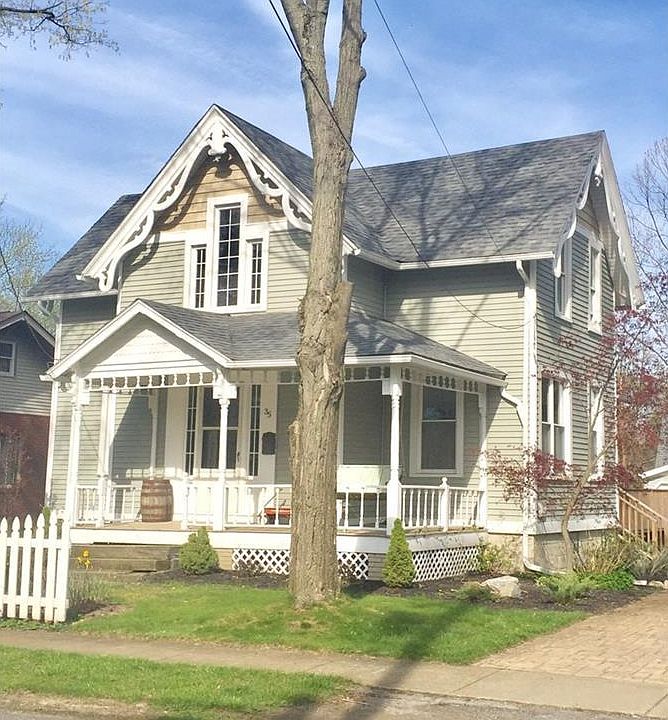 Charm galore and lots of gingerbread on this magnificent totally updated home. The entire home has been updated a little over 2 yrs ago. 3 car carriage style 2 story garage, Come see this gorgeous 3 bedroom 2 full bath home with 9ft ceilings through out. Lg eat in kitchen features Cherry cabinets, granite counter tops, Skylights, micro tile back splash, stainless steel appliances and maple hardwood floors. Dining room, living room, family room and kitchen have all hardwood floors. Family room features cathedral ceilings and a unique gas fireplace. Call today to make an appointment to see this home. Updates include electric wiring thru out whole house, electric panel, roof , windows, siding, deck, kitchen, both bathrooms, flooring, dry wall, HWT and furnace all has been since 2015.