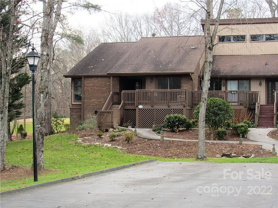 BEAUTIFULLY RENOVATED GOLF COURSE CONDO! Unique end unit situated on the 7th fairway/green and 8th tee box at Etowah Valley Golf Course. Three unit complex feels more like a private home. Welcoming entry leads to great room with views from front to back of golf course. Custom new kitchen with granite, stainless appliances and hardwood floors. Living room has two story fireplace with new gas logs, custom barn wood mantle and skylights. Sunroom is perfect for any flex space needed. Primary bedroom has course view with private access to sunroom. Floored attic with built ins and high, encapsulated crawlspace. Front porch has covered area plus open area with gate for humans or pets to enjoy! Full length covered back deck has natural gas hookup, skylights, tile. You will enjoy watching golf and beautiful sunsets. Abundant parking, garage, street lights and lighted sidewalks. Only nine steps into home. Walk to dining at Salty Landing or Zekes Restaurant. Located within Etowah Golf Villas.