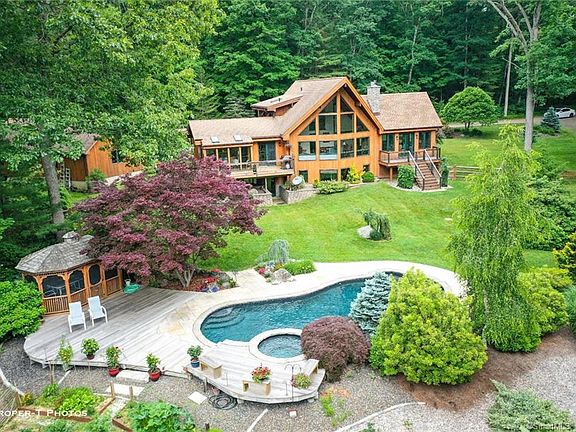 EXTRAORDINARY INSIDE AND OUT. Vacation at home all year round in this Unique Lindal Cedar Beauty. Combination of warm and modern architectural features that will please all demanding buyers. Be wowed as you approach the magnificent setting, its front porch, 3 car gar and the beautiful landscaping. Nothing here is ordinary: the striking wooden ceilings, wood floors, floor-to-ceiling windows. Inside: a well designed kitchen featuring hard surface counters, double oven, cherry cabinetry & dining room with built-ins. All this opens to a GREAT SUNNY ROOM featuring an impressive wall of glass (the signature of a Lindal Home, overlooking your own private Paradise offering a double sided stone gas fireplace, 2 story wooden ceilings. Also on 1st floor, a warm and inviting family room in the same style adding to the living space. The entire 1st floor has access to a beautiful side to side mahogany/trex deck, 2 bedrooms and full bath on first floor. The Bedroom Suite is located on the 2nd floor with new carpets, cathedral ceilings, walk-in closet, full bath with double sinks, tub & shower. The walkout lower level can accommodate media, office, bar area & exercise space, with direct access to backyard. OUTSIDE IS A DREAM: YOUR OWN RESORT 10.47 partially fenced in acres, heated IG pool, gazebo, organic garden area, abundant decking. This lot has frontage on Moose Meadow and Fermier. TOO MUCH TO MENTION COME OVER, SEE FOR YOURSELF THINK WEEKEND RETREAT OR JUST AN ALL YEAR VACATION.