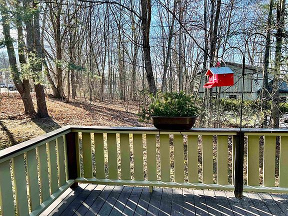 Enjoy comfort and convenience in this nicely maintained and spacious Village Green condo. Freshly painted with many updates including heat pumps and new triple pane windows. An open concept main level features a charming kitchen, hardwood floors, a hearth and pellet stove and sliders to a very large deck. Three bedrooms on second level, including the primary bedroom and walk in closets . Attached one car garage and additional parking. Lovely, wooded, private setting and super convenient location. Close to shopping, schools, restaurants and all amenities!