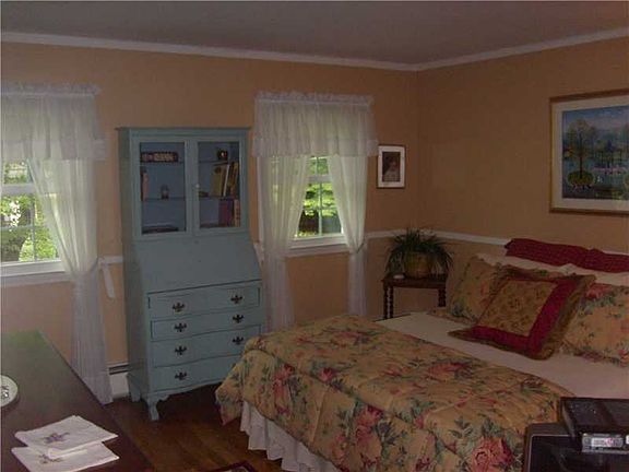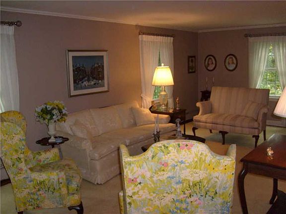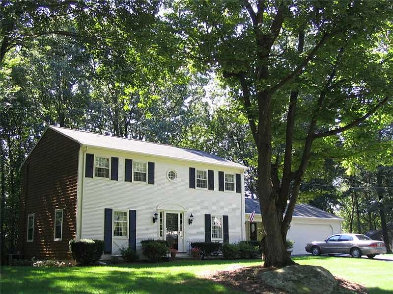 4 bed colonial located on quiet treed street. Family w/ brick fireplace, applianced EIK, Formal Living and Dining, hardwoods, laundry on 1st, new windows, patio, farmers porch, garages, 1/2 acre lot w/ sewer and water connection. Well maintained.