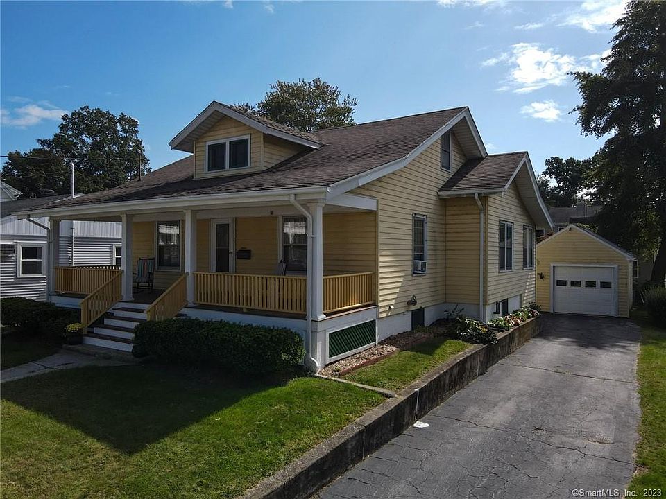 This Adorable bungalow GEM sits one block from EB. Meticulously maintained and built to last. Relax and enjoy on the lovely covered front porch. You will feel welcomed by the soaring 9' ceilings and warm hardwood floors. Spacious bedrooms with connecting full bath and great closet space. The bright and cheery sunporch overlooks a sweet back yard and picket fence entry. One car garage features automatic door opener. Super clean throughout! Asphalt shingled roof and oil fired boiler in excellent condition. Pristine basement. 3rd bedroom located upstairs. With some cosmetic updates this home will shine for years to come.