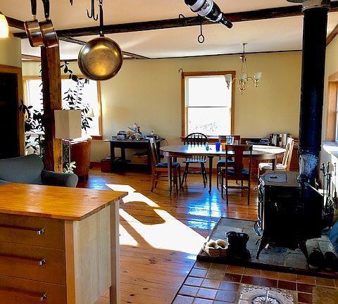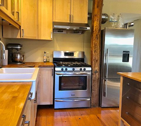 Freshly painted, this 1850 South Facing Cape has been completely rebuilt around the original Chestnut Beams. Mountain retreat sited on 12 acres, nature performs the seasons through copious windows. Trails in the yard lead to the Dubuque State Forest. Open concept floor plan creates family entertaining space. Ambiance from a glass front wood stove warms the room while heating the entire home. New kitchen & pine floors installed within the last few years. Butcher block countertops, Fisher Paykel Fridge, a 5 burner stove, abundant work space w/center island & storage. Original Wide Pine Floors in the Living & Dining room refinished last fall. A 1st floor bdrm and full bthrm allow desirable one floor living. Upstairs, large Master w/skylights & 1/2 bath plumbed to convert to a full. Loft style possible 3rd bdrm w/ huge walk-in closet. All 5 min to Berkshire East Resort, Rafting, Skiing, Mtn Biking. 5 miles to RT 2. Property also includes a 3 story building with balcony, such possibilities!