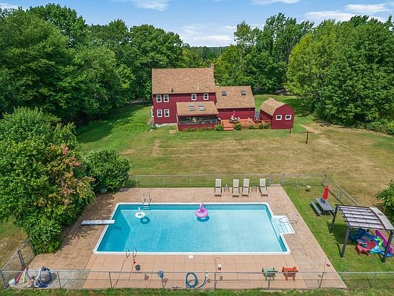Welcome home to 35 Fort Hill Road, Oxford!! This gracious 4 bedroom 2 1/2 bath Colonial home has loads of updates over the past 6 years! Gorgeous kitchen with center island w/ white cabinetry, quartz countertops, stainless appliances, breakfast nook, pantry closet, bamboo flooring, central AC, spacious dining room connecting to formal living room, family room w/ masonry fireplace. Primary bedroom w/walk-in closet, private bath PLUS a bonus room to use as a home office, gym, yoga rm, or whatever you need! 3 more spacious bedrooms and a full bathroom round out the 2nd floor. Great 4 season sun room off kitchen makes a nice space for entertaining & family gatherings, leads out to oversized deck overlooking nicely landscaped yard, I/G pool has updated stamped concrete patio for all your summertime fun! The yard has lots of space for gardening, soccer, yard games, ice rink & more! Oversized 2 car garage w/ storage areas, barn shed w/ electricity for your add'l storage needs. A must see!