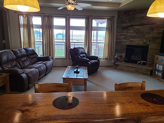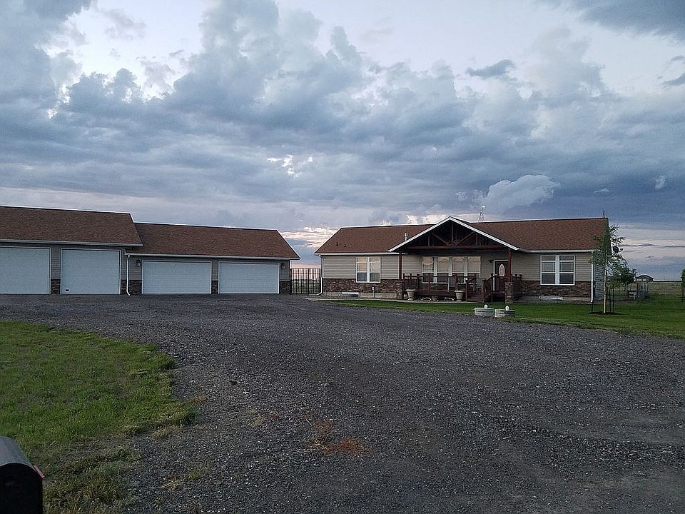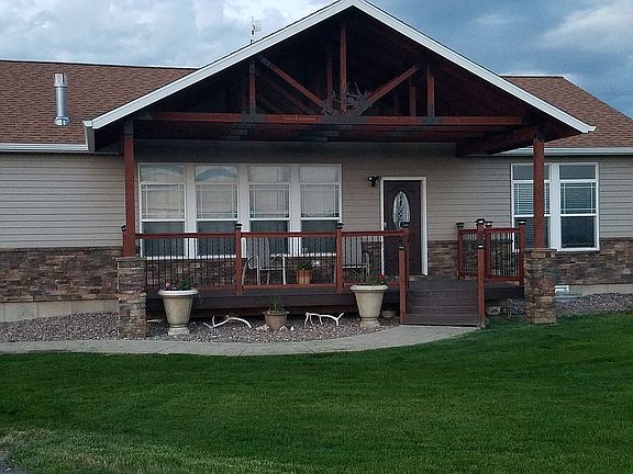 This 5 bedroom 3 bathroom home features an open floor plan with a large and beautiful kitchen. Custom countertops and copper sink. 2 gas fire places. Master bed and bath with walk in. It sits on 5 acres in the Tri View Estates subdivision, just 4 miles outside of Great Falls (just west past the airport). From the front it has an amazing view of the butte and mountains to the west. The back has a very large fenced area, with plenty of room for kids and dogs. A few of the folks in the subdivision have horses as well. If horses are something you enjoy there is plenty of room to ride and with 5 acres of land, plenty of room to house 1 or 2. The basement is complete with bulit in wine and beer coolers and custom wood wet bar. Stained concrete and pool table! There is also a very large storage area in the basement with plenty of shelving. there are two decks attached to the house. The front deck is 8x32 with custom exposed trusses. and the back deck is 16x32. Both are constructed with composite maintenance free decking. The detached shop is 30x70 with 13 foot ceilings on one half and all commercial insulated doors. Fully heated and floor drains as well. 100 amp service and 220 already ran in shop. Well drilled in 2018 down to Madison aquifer so you'll never haul water.constant pressure pump. Sprinker system in front and in raised garden in back. New steel siding and rock work in 2018 on entire house and shop. New 95% furnace in house. 94 % in garage. 2 huge storage sheds in back yard as well. Lots more to see! With the square footage of the house, large decks, huge garage, five acres of land, and all in a very nice subdivision, this is a great place to live. Any questions contact Mike 406-788-8712. Lot next door is also available for purchase.