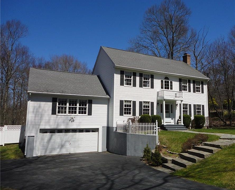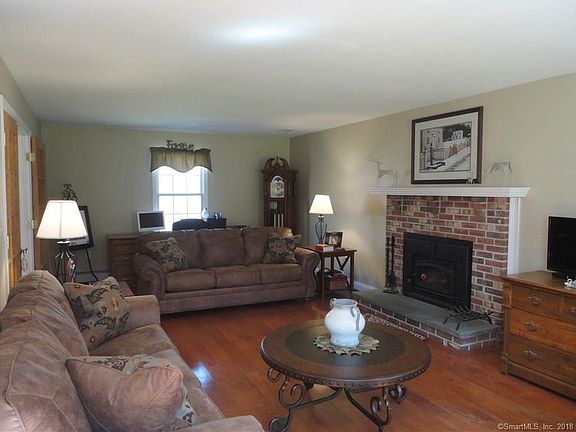 Beautiful one owner Colonial, well cared for throughout. Neighborhood location, dead end street. Floor to ceiling foyer drenched with light. Formal dining, front to back living room with fireplace and woodstove insert. Open kitchen with wood block island and eat-in space, French doors to living room. Large first floor family room with cathedral ceiling and propane fireplace. Upper level has three full size bedrooms. Master suite with full bath, walk in closet and laminated flooring. Finished lower level adds approximately 500 s.f. , great rec room, craft room, play room. Bi-level decking, above ground pool and private back yard. Garden/relaxation sitting area off side yard of house. Just down the road from Salmon River Park.