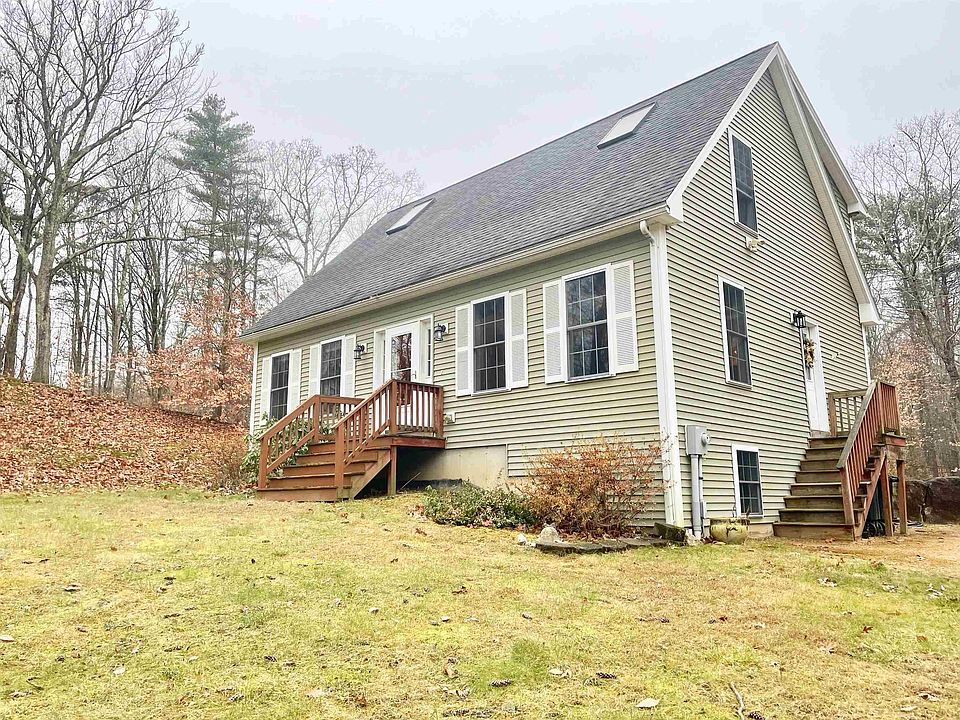 Welcome to 35 Francesca Way, located in desirable Dunbarton Estates! This 3 bedroom cape with 1.5 baths is situated on 1.65 acres. The first floor has a kitchen, dining room, living room and bathroom. The living room has a pellet stove which is a great source of heat for the home. The second floor has three bedrooms and one bathroom. The master bedroom has cathedral ceilings with skylights which adds lots of natural sunlight to the room. There is a spacious yard that is wooded, very private and peaceful. An above ground pool can be enjoyed in the summer time, and the deck is a perfect place to sit and enjoy nature. This is a great commuter location within a peaceful country setting. It is close to 101, Route 4, UNH, shopping and restaurants in Epping, Raymond and Lee, 10 minutes from Pawtuckaway State Park, and 30 minutes from Portsmouth and Manchester. Students have the choice to attend Dover High School or Coe-Brown Academy. Call now for a showing!