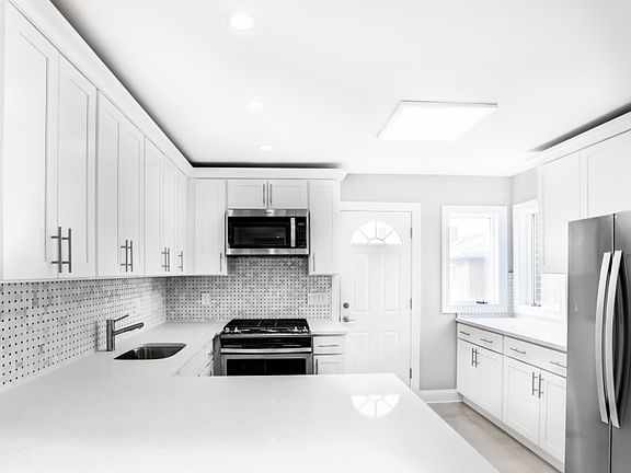 Welcome home to this renovated and spacious one family home situated on a double lot. As you enter the first floor there is a large welcoming living room which leads to a beautiful and bright sun-room, dining room and kitchen. There are also two large bedrooms and a full bathroom. The second floor features a third bedroom which can be used as a master suite. House comes complete with a full finished basement which includes a separate entrance with 2 bedrooms, family room, one full bath and a laundry room. Perfect for extended family. Upgrades include central heating and cooling, stainless steel appliances and quartz countertops. Large backyard great for entertaining. One garage with a large driveway to fit multiple cars. Close to transportation, schools, places of worship and shopping.
