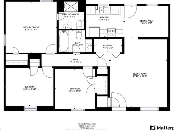 - Total interior livable area: 1,132 sqft